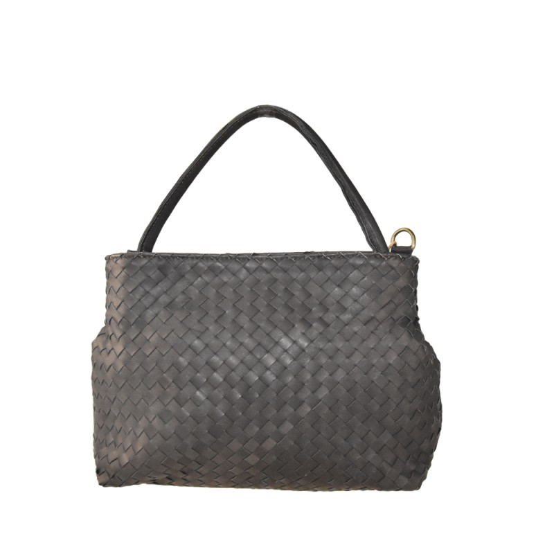 Woven leather handbag with shoulder handler 100% made in Italy