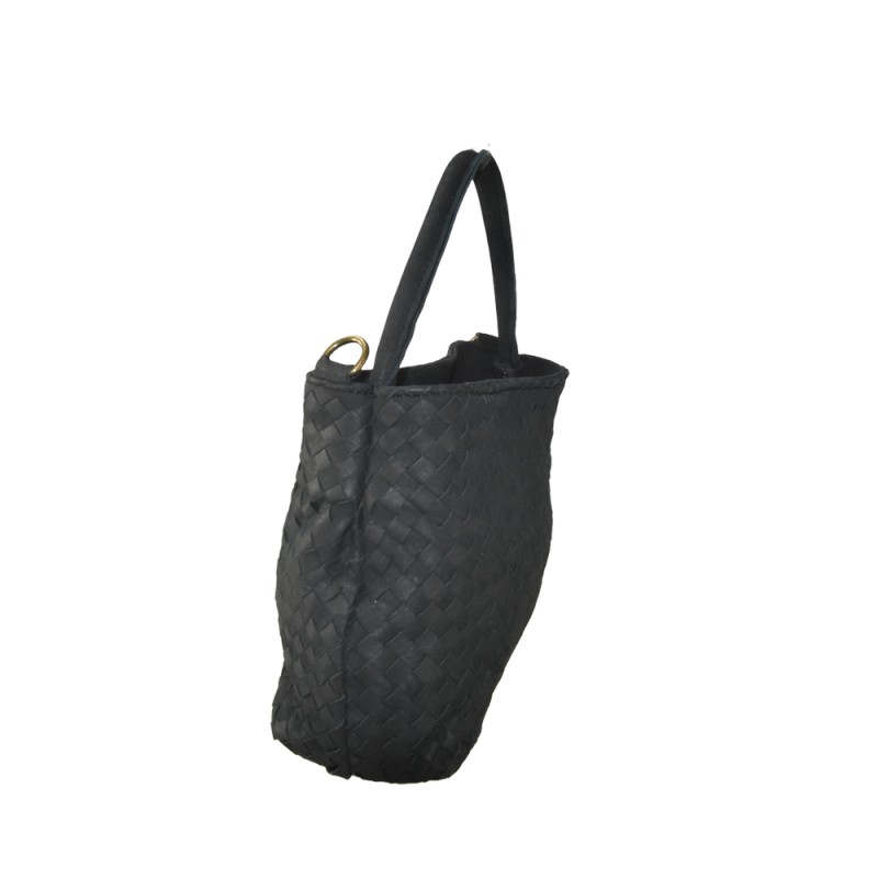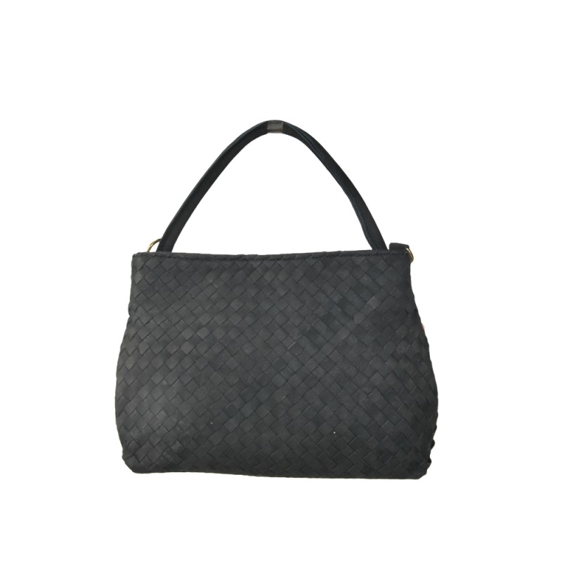 Woven leather handbag with shoulder handler 100% made in Italy