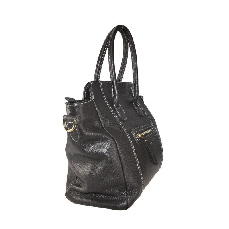 This elegant leather handbag combines style and functionality, perfect for any occasion. Made from premium leather, it features a sleek design with clean lines and a structured silhouette. The bag offers a spacious interior with multiple compartments, allowing for organized storage of your essentials. Equipped with both top handles and a detachable shoulder strap, it provides versatility in how you carry it. Available in different colors, this bag is the ideal accessory for those who value both fashion and practicality.