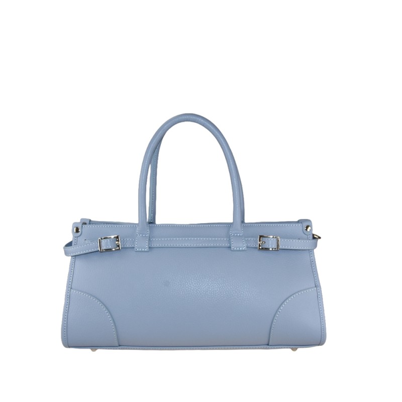 Women's genuine leather handbag, 100% Made in Italy, featuring an elegant and contemporary design. Crafted from smooth high-quality leather, it boasts a structured and compact silhouette, ideal for any occasion. Equipped with double rigid handles and an adjustable, removable shoulder strap for versatile use. The spacious lined interior includes a central zipped compartment, perfect for optimal organization. Available in various refined colors to suit any style. A perfect choice for boutiques and stores specializing in leather bags and accessories.