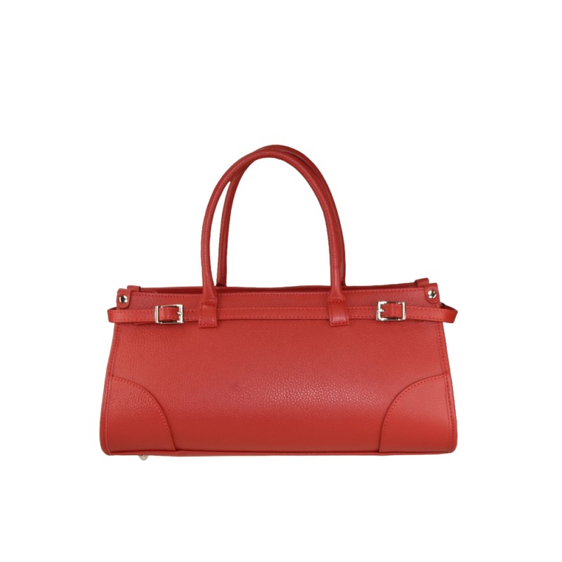 Women's genuine leather handbag, 100% Made in Italy, featuring an elegant and contemporary design. Crafted from smooth high-quality leather, it boasts a structured and compact silhouette, ideal for any occasion. Equipped with double rigid handles and an adjustable, removable shoulder strap for versatile use. The spacious lined interior includes a central zipped compartment, perfect for optimal organization. Available in various refined colors to suit any style. A perfect choice for boutiques and stores specializing in leather bags and accessories.