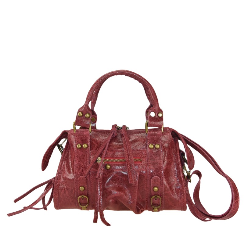 The BA29832 leather handbag with shoulder strap stands out for its structured and minimalist design. Crafted from smooth leather with a semi-gloss finish, it features double handles and a removable, adjustable strap, making it perfect to carry by hand or over the shoulder. The fabric-lined interior is organized with compartments and zip pockets for practical storage. A clean and functional style, ideal for everyday use.