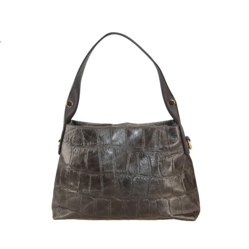 Leather handbag with croco effect with shoulder strap 100% made in Italy