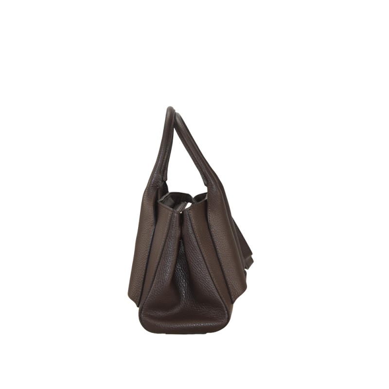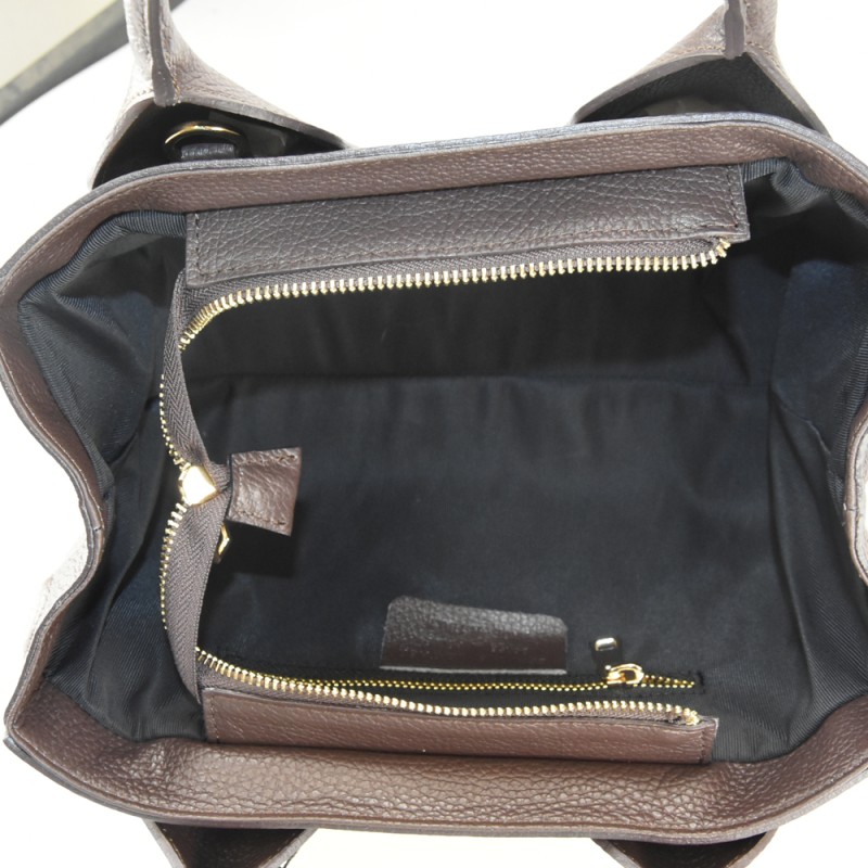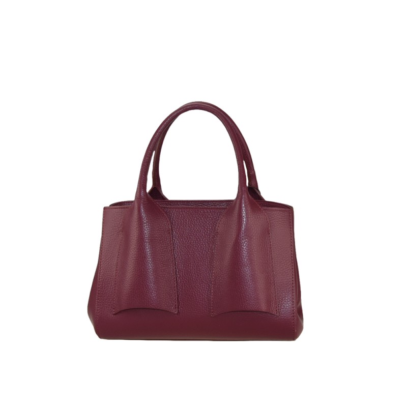 Leather handbag CU38842 with a compact, clean-lined design, perfect for a minimal yet refined style. Its rigid structure and zip closure enhance its elegant shape, while the top handle and adjustable, removable strap ensure versatile wear. The interior is neatly organized with a zip pocket, ideal for carrying essentials. A leather handbag designed for boutiques seeking trendy and functional wholesale accessories.