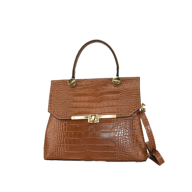 Made in Italy leather handbag model CY33836, with a compact and sophisticated design. Featuring a geometric, structured shape, it includes a top zip closure, double handles, and a removable, adjustable shoulder strap for versatile wear. The interior is functional and neatly finished, with compartments ideal for everyday organization. Available in refined shades such as black, tan, beige, and burgundy. Perfect for boutiques and retailers looking for a stylish, practical accessory suitable for any season.