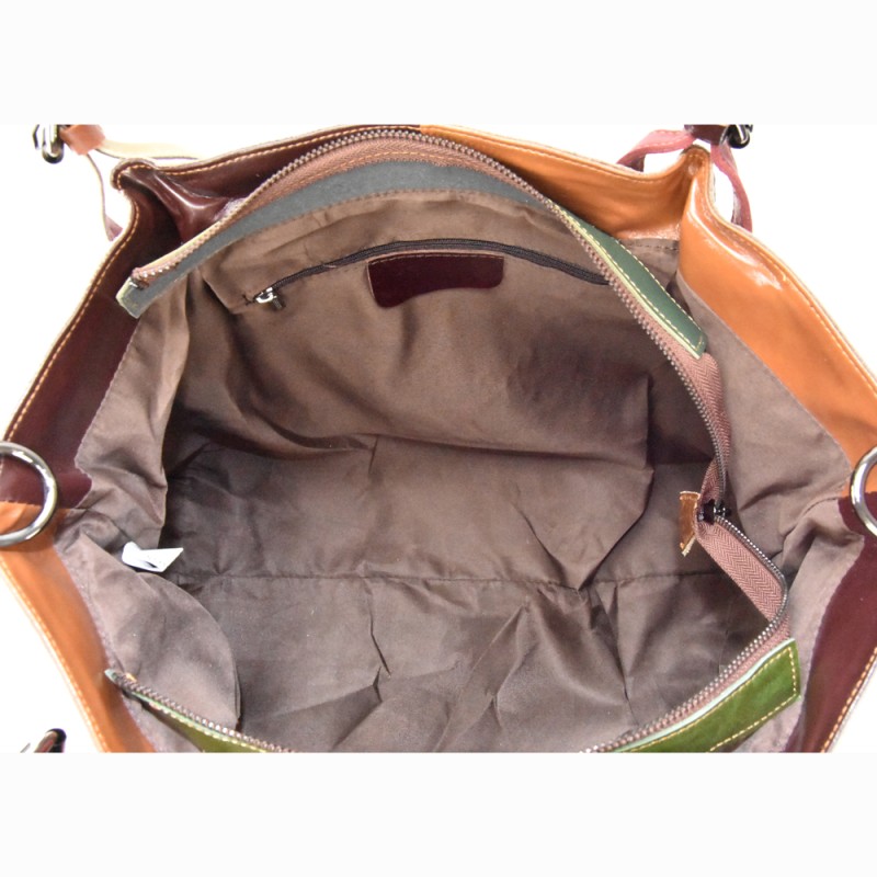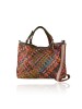 Woven leather bag with patchwork with shoulder strap