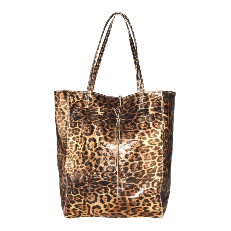 This women's leather shopping bag features an eye-catching printed design, combining style and practicality. Crafted from high-quality leather, it offers a spacious interior, perfect for carrying all your daily essentials. The sturdy handles ensure comfortable wear, while the unique printed pattern adds a touch of personality to any outfit. Ideal for both casual and chic occasions, this bag effortlessly blends functionality with fashion.