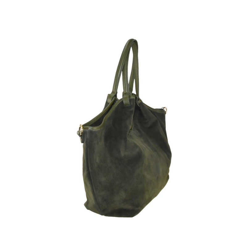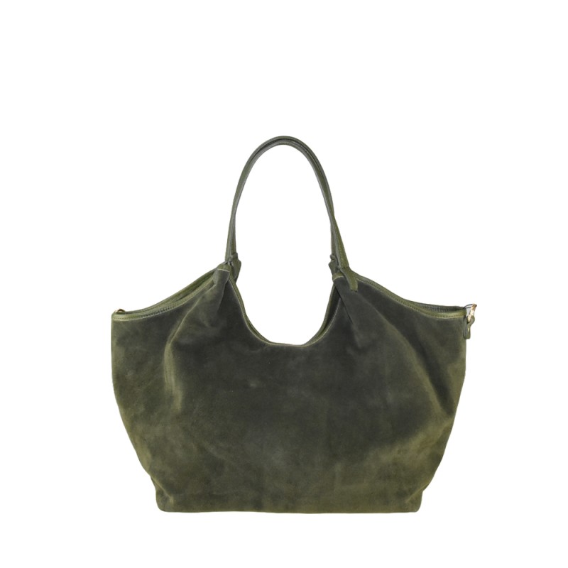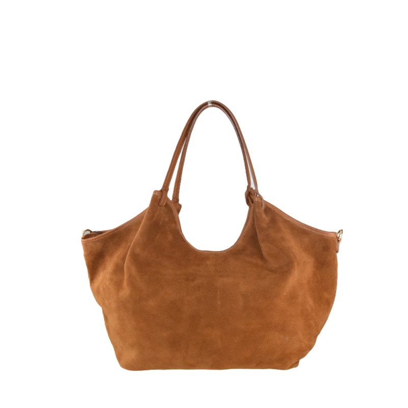The UG35838 suede leather shoulder bag offers a clean, contemporary style that complements any look with understated elegance. Made in Italy, it features a soft silhouette, short handle, and a removable, adjustable shoulder strap for versatile wear. The lined interior is spacious and designed for practicality and organization. A perfect model for shops and boutiques seeking refined yet minimalist wholesale leather shoulder bags.