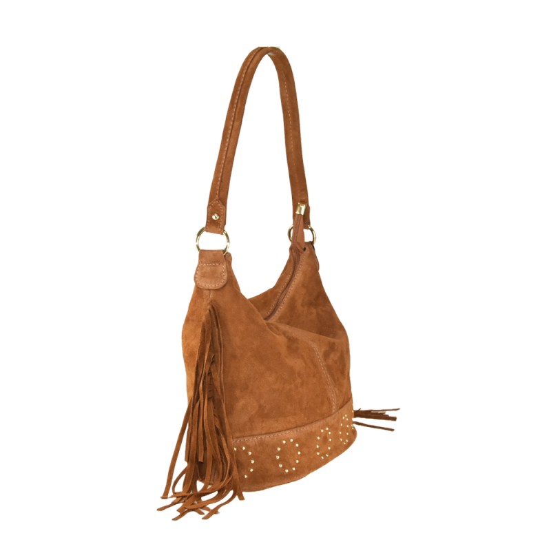 Suede shoulder bag 100% made in Italy with fringes and shoulder strap