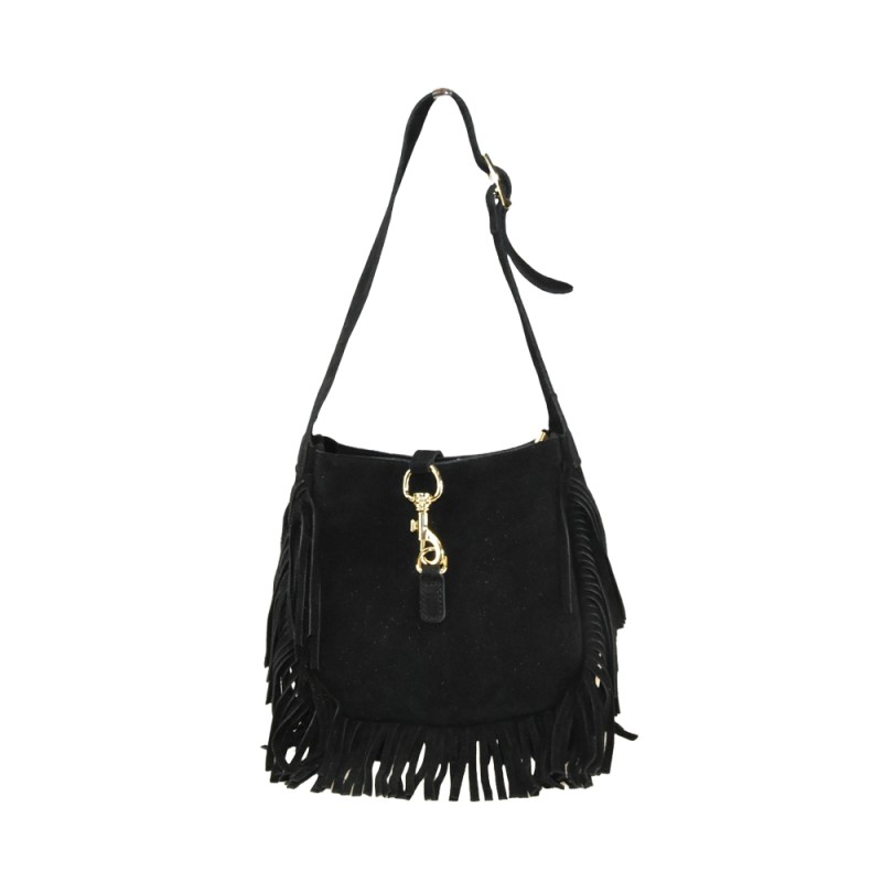 Woman leather shoulder bag with fringes, regulable shoulder strap, 100% made in Italy