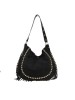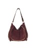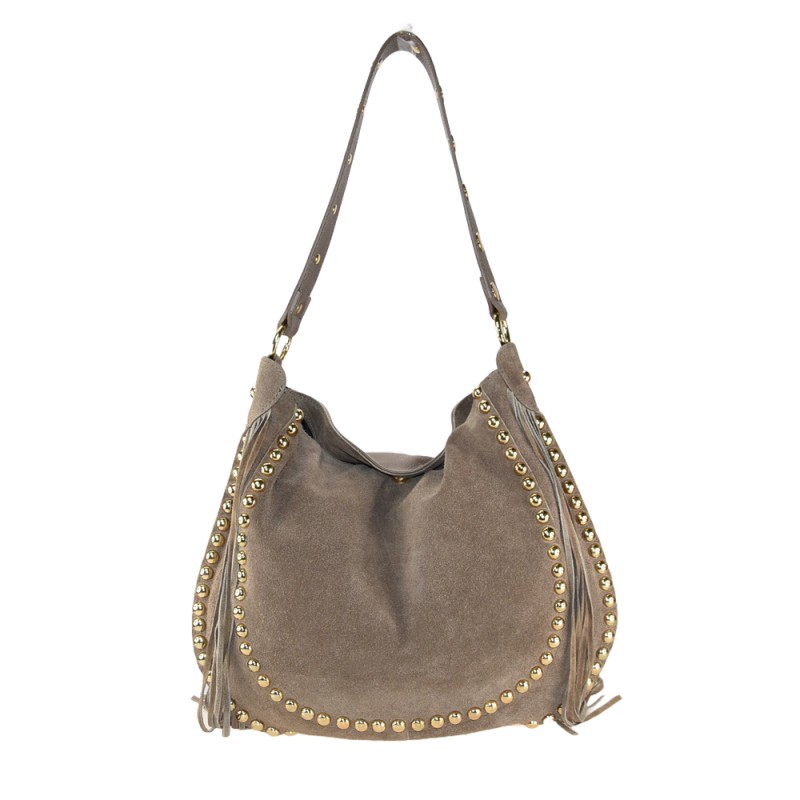 Suede shoulder bag with studs and fringes 100% made in Italy