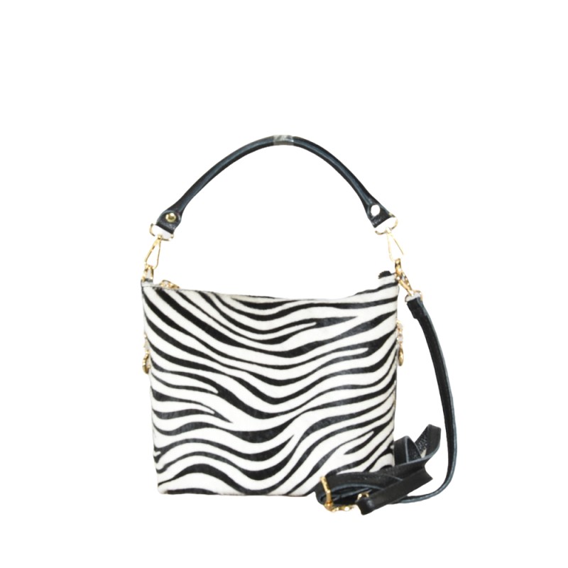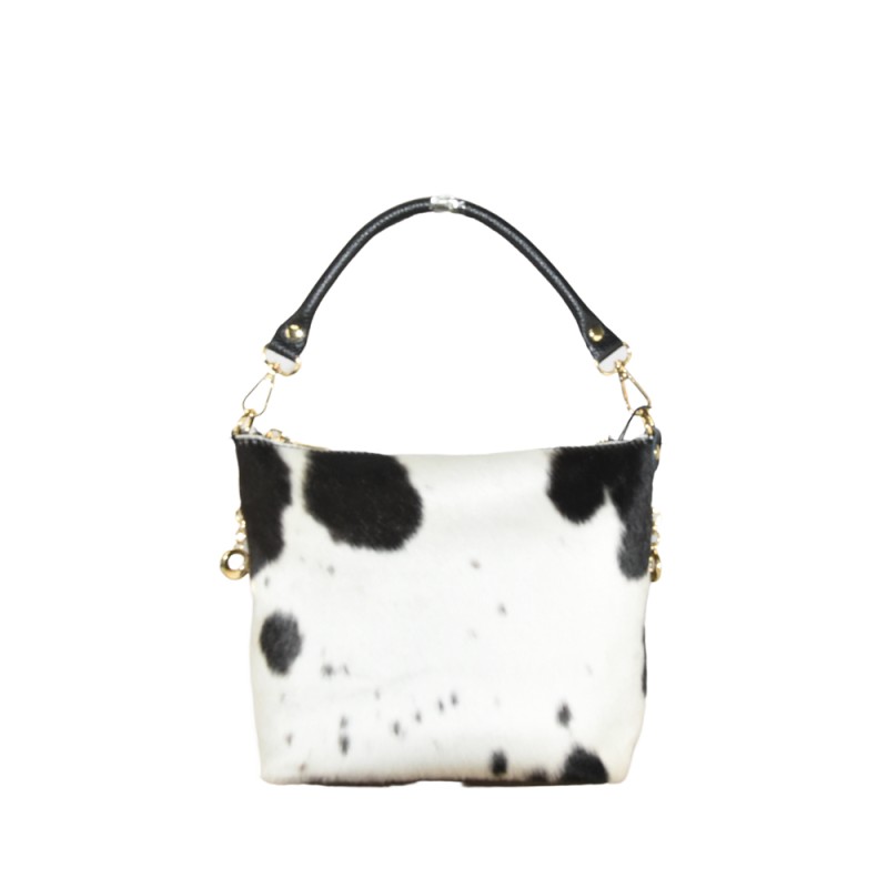 Genuine fantasy fur leather shoulder bag 100% made in Italy with crossover strap