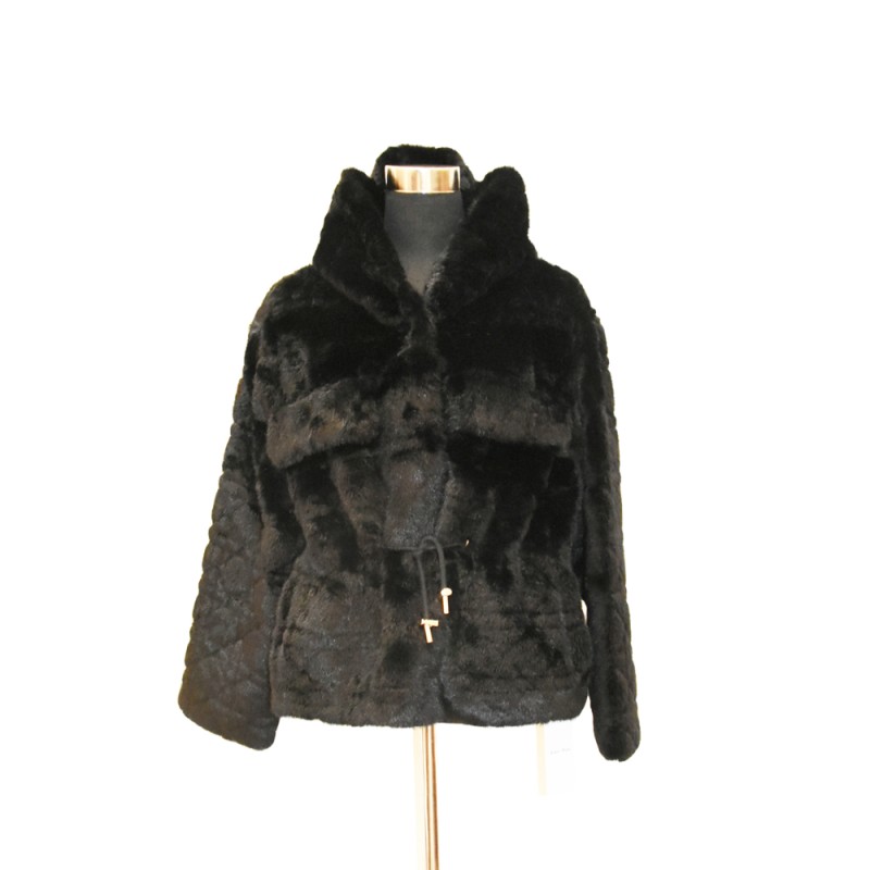 Eco-fur jacket with mink-effect finish GA168, soft and refined. The short cut with wide collar and long sleeves adds elegance and comfort, making it perfect for both casual and chic outfits. Its fluffy mink-effect faux-fur texture provides warmth and sophistication, while the front closure ensures practicality. Available in versatile neutral shades, this jacket is a stylish choice for the winter season.