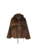 Eco-fur jacket with mink-effect finish GA168, soft and refined. The short cut with wide collar and long sleeves adds elegance and comfort, making it perfect for both casual and chic outfits. Its fluffy mink-effect faux-fur texture provides warmth and sophistication, while the front closure ensures practicality. Available in versatile neutral shades, this jacket is a stylish choice for the winter season.