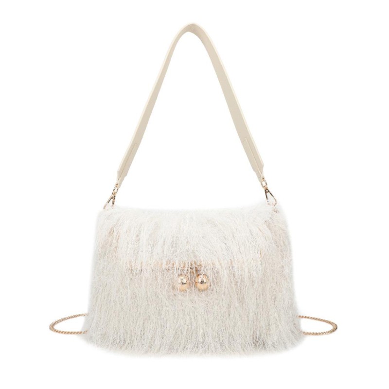 Women's shoulder bag in faux fur with a soft and cozy design, perfect for adding a refined touch during the colder seasons. The rounded faux leather handles and metallic details enhance its elegant appeal. Featuring a removable and adjustable shoulder strap, it ensures maximum versatility. The spacious, lined interior with zip compartments offers excellent organization for daily essentials.