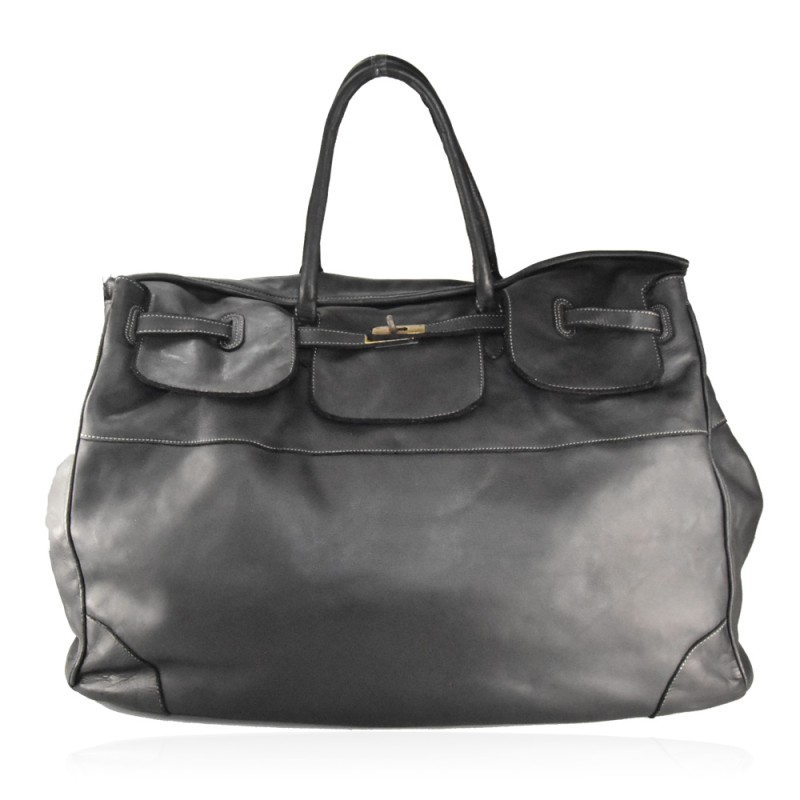 Unisex vintage leather travel bag with shoulder strap 100% made in Italy