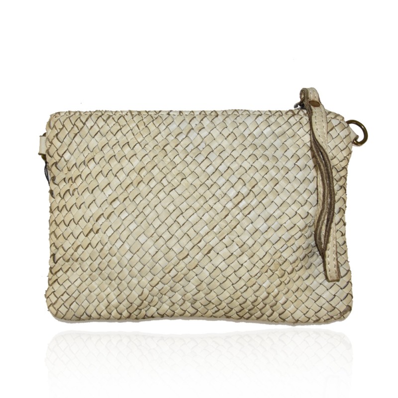 Woman washed leather pochette with vintage effect. 100% made in Italy