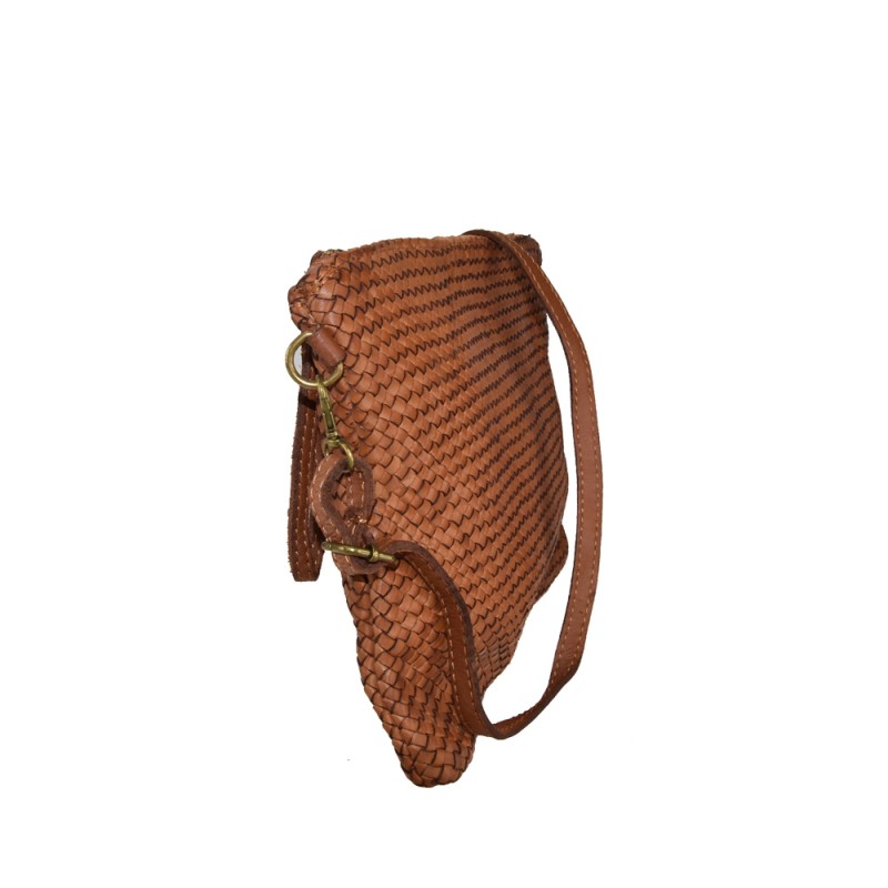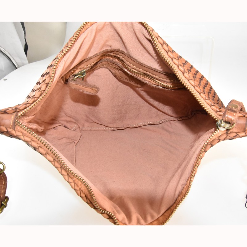 Woman washed leather pochette with vintage effect. 100% made in Italy