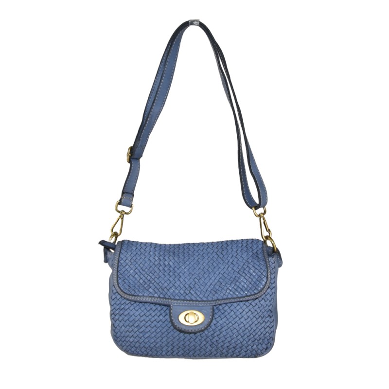 Woman washed leather bag with shoulder strap. 100% made in Italy