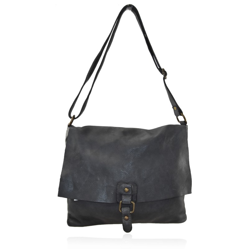 Woman washed leather bag with shoulder strap. 100% made in Italy