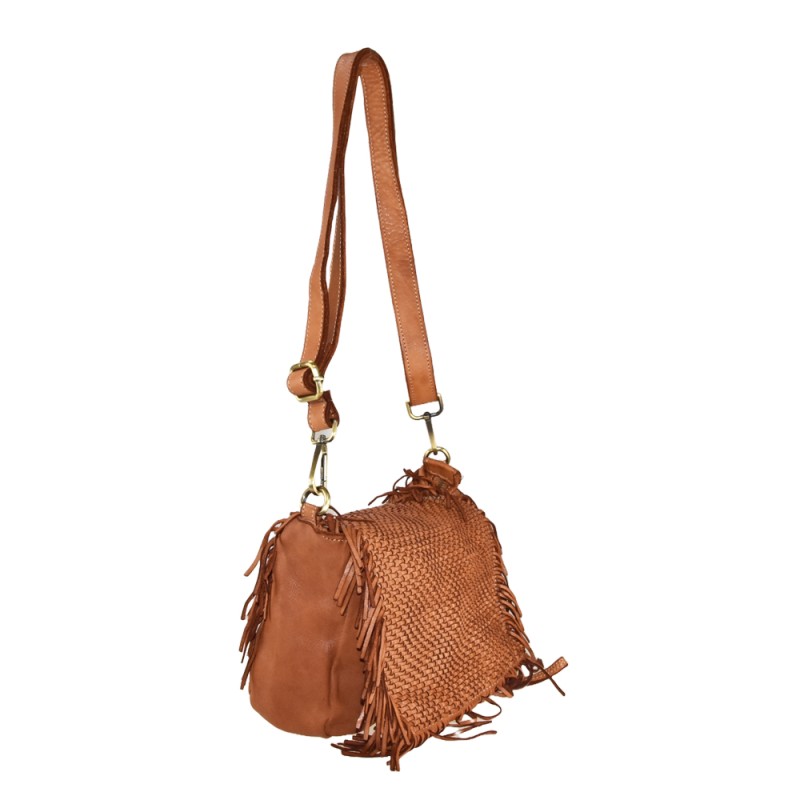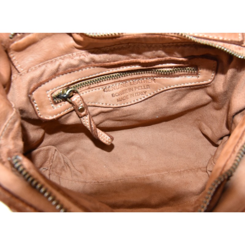 Woman washed leather bag with shoulder strap. 100% made in Italy