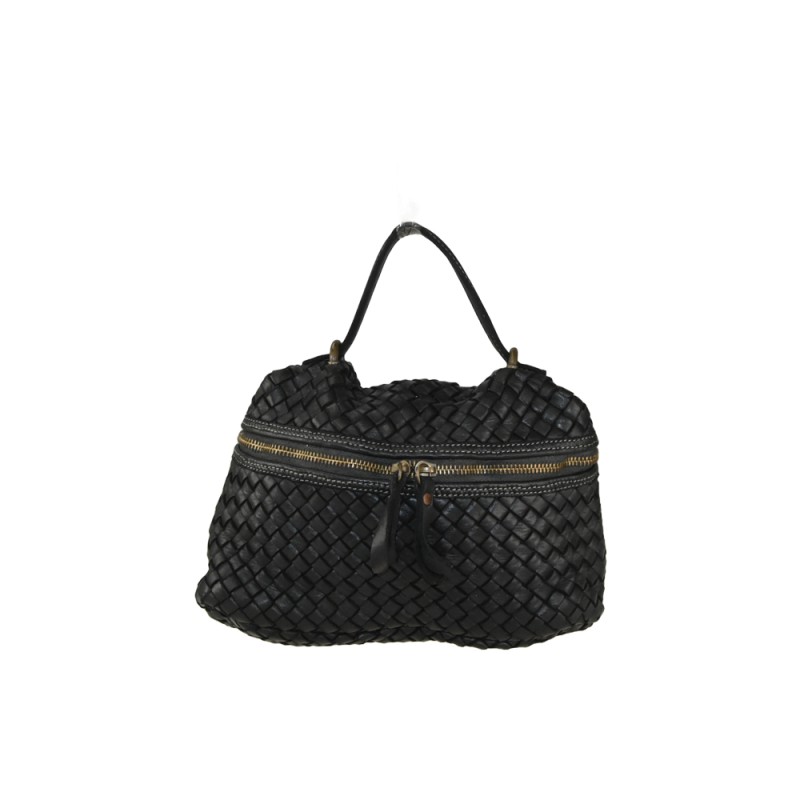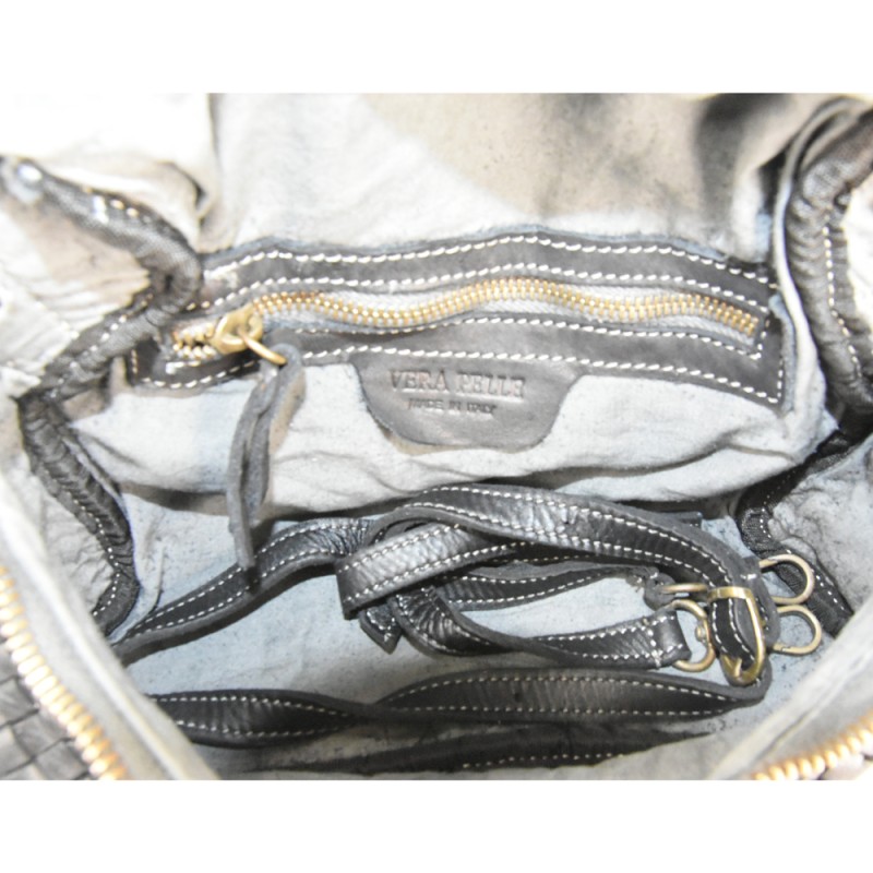 Vintage leather woman hand bag with shoulder strap, 100% made Italy