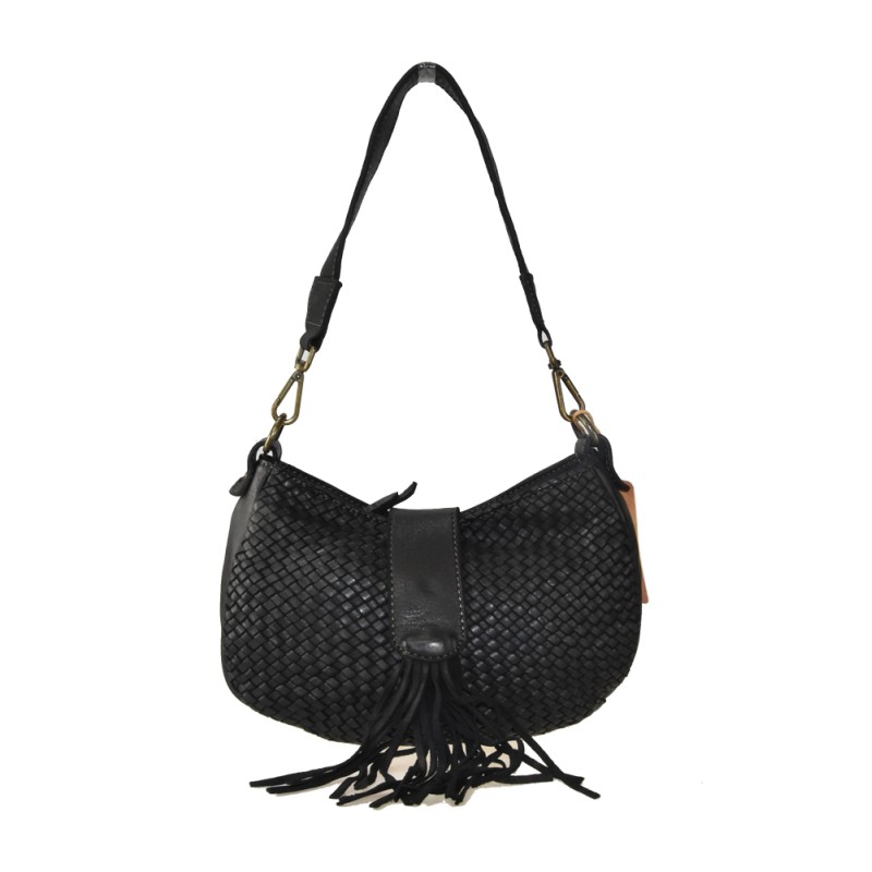 Vintage leather woman hande & shoulder bag with shoulder strap, 100% made Italy
