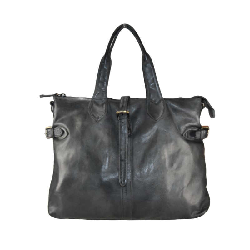 Vintage leather woman hande & shoulder bag with shoulder strap, 100% made Italy