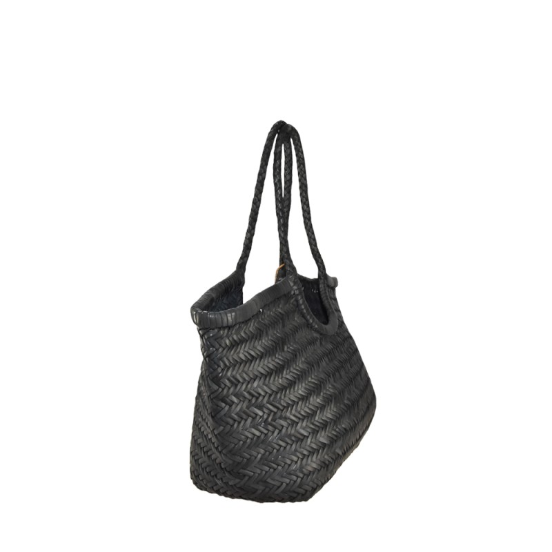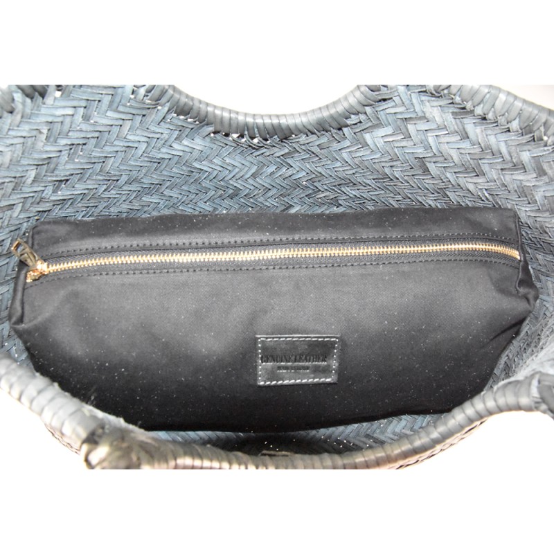 Vintage hand woven leather woman shoulder bag, 100% made Italy
