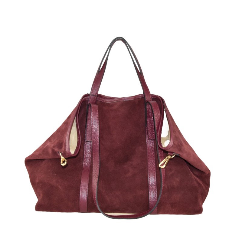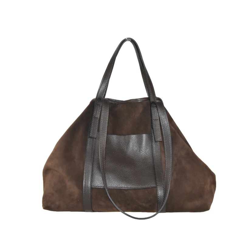 Borsa donna a mano e spalla con tracolla in pelle camoscio 100% made in Italy