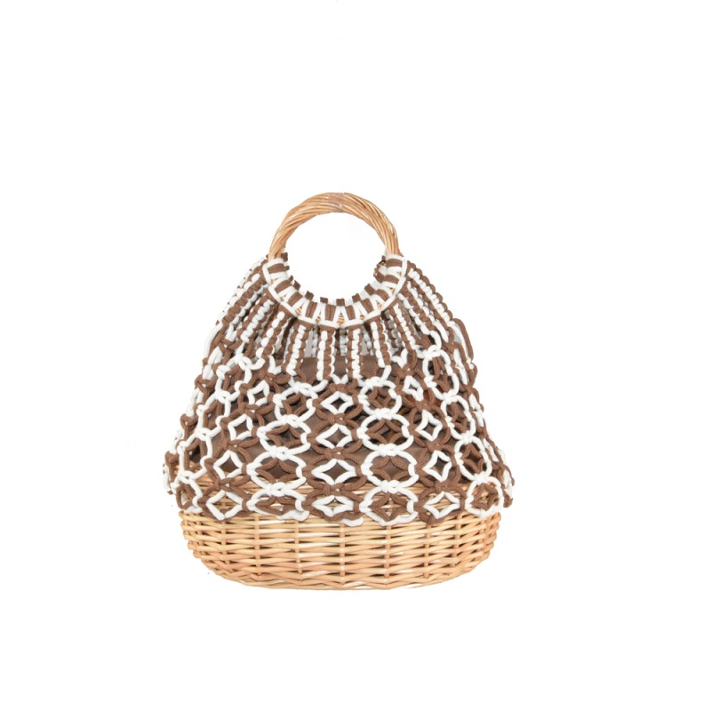 Borsa in bambu a mano & tessuto, manico in bambu e tracolla