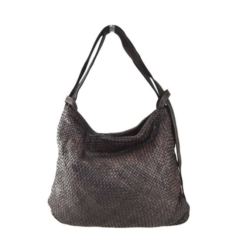 Borsa da spalla convertibile in zaino pelle vintage intrecciato - QZ55861