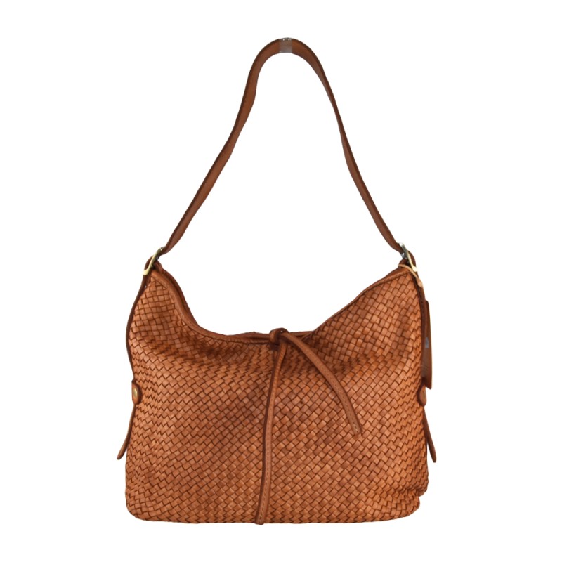 Borsa donna a spalla in pelle intrecciato vintage, 100% made Italy