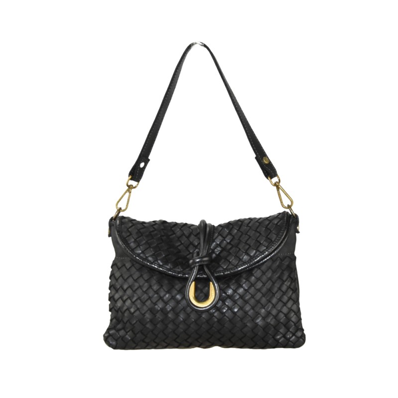 Borsa donna in pelle tinto in capo intrecciato con tracolla. Pelle 100% made in Italy