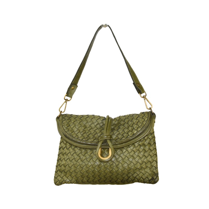 Borsa donna in pelle tinto in capo intrecciato con tracolla. Pelle 100% made in Italy