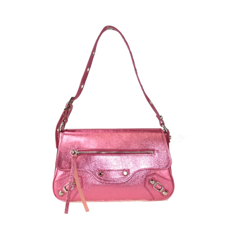 Borsa donna da spalla in pelle laminato con borchie 100% made in Italy.