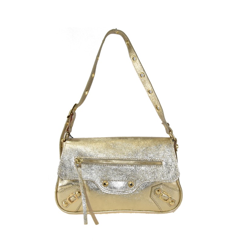 Borsa donna da spalla in pelle laminato con borchie 100% made in Italy.