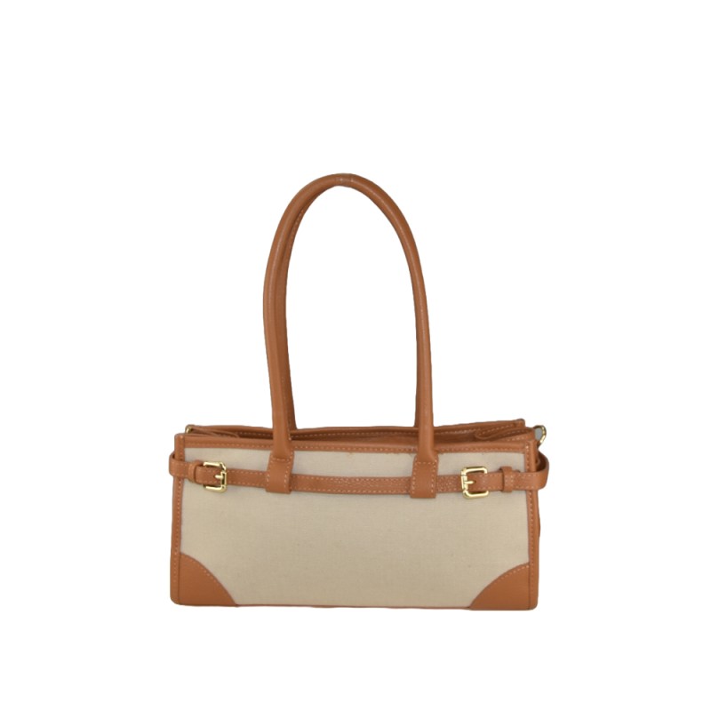 Borsa a spalla in kanvas e pelle KP33836, interamente realizzata in Italia. Elegante e pratica, combina la robustezza del canvas con dettagli in vera pelle per un look raffinato e contemporaneo. La chiusura superiore con zip protegge un interno spazioso e foderato, completo di tasche multifunzione. La linea morbida e la forma capiente la rendono perfetta per l’uso quotidiano. Disponibile nei colori marrone, cuoio, verde, nero e taupe, è ideale per completare con stile ogni outfit urbano.