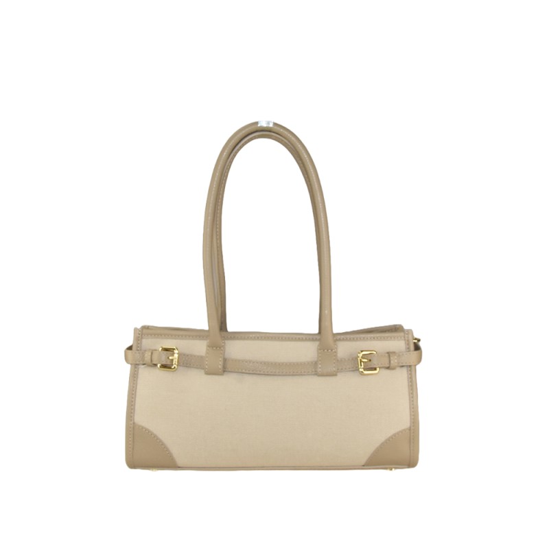 Borsa a spalla in kanvas e pelle KP33836, interamente realizzata in Italia. Elegante e pratica, combina la robustezza del canvas con dettagli in vera pelle per un look raffinato e contemporaneo. La chiusura superiore con zip protegge un interno spazioso e foderato, completo di tasche multifunzione. La linea morbida e la forma capiente la rendono perfetta per l’uso quotidiano. Disponibile nei colori marrone, cuoio, verde, nero e taupe, è ideale per completare con stile ogni outfit urbano.