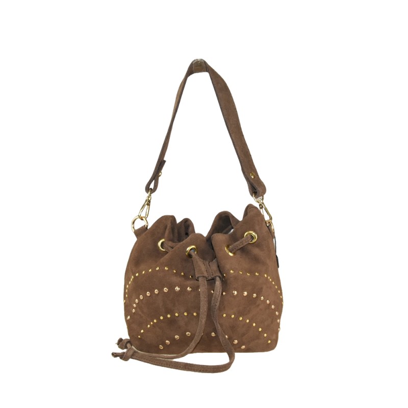 Secchiello in pelle camoscio con borchie 100% made in Italy, con tracolla