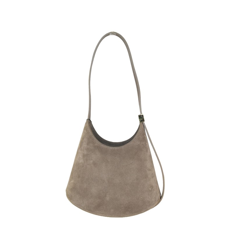 Secchiello in pelle camoscio 100% made in Italy, con tracolla