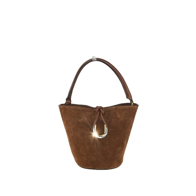 Secchiello in pelle camoscio 100% made in Italy, con tracolla