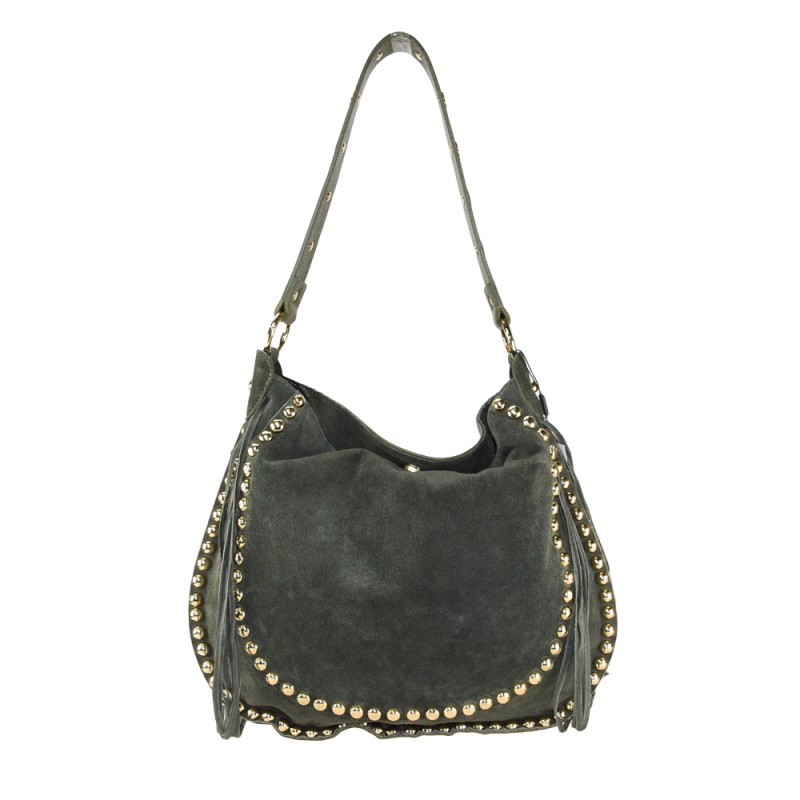 Borsa donna a spalla in pelle camoscio con borchie e frange 100% made in Italy