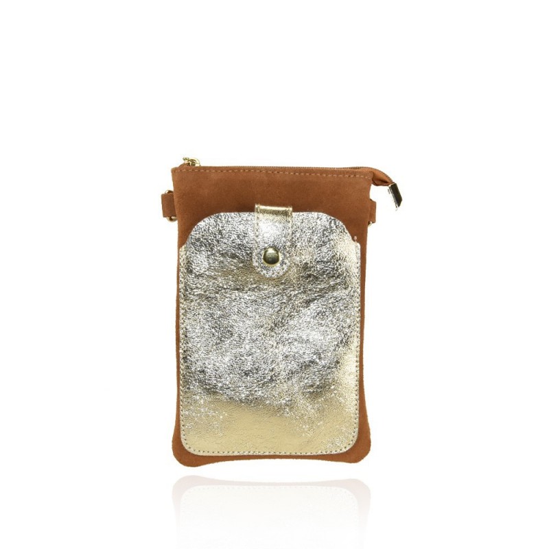 Portacellulare e pochette donna in pelle con tracolla 100% made Italy