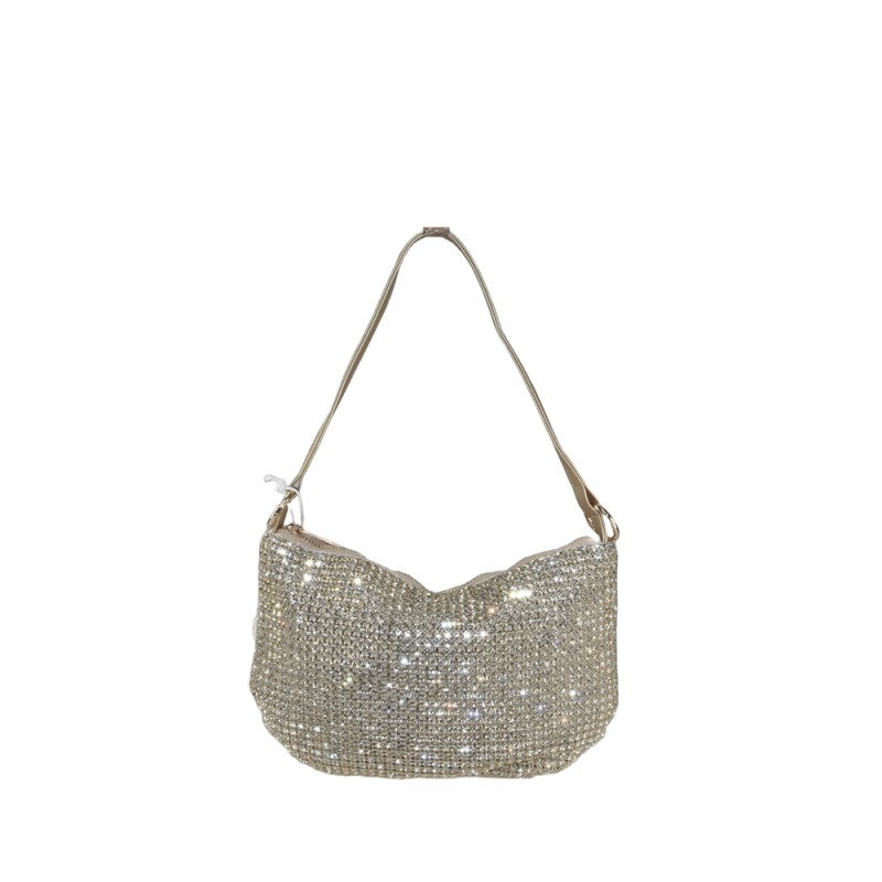 Aggiungi un tocco di glamour a qualsiasi look con questa pochette donna con strass. Realizzata in ecopelle, si distingue per il design elegante e brillante, arricchito da strass che ne esaltano la raffinatezza. Il formato compatto, ma funzionale, la rende perfetta per occasioni speciali, mentre il cinturino removibile permette di indossarla come pochette o borsa a spalla. Un accessorio Made in Italy imperdibile per i rivenditori alla ricerca di pezzi chic e alla moda.